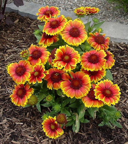 Gaillardia Arizona Sun - ранняя крупноцветковая серия. Куст компактный, высотой 30 см. Цветки диаметром до 9 см, ярко-желтые с красным основанием лепестков. Растение одинаково хорошо смотрится и в контейнерах, и в цветниках.