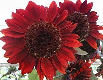 Гелиантус Красное солнышко – однолетний декоративный подсолнух российской селекции с красно-коричневыми цветами. Высокорослый сорт – в высоту доходит до 2 метров. Бордовые бархатистые цветы имеют темную сердцевину. Период цветения – с начала июня до конца сентября. Высаживается на рассаду в ящики в марте, затем в мае – в открытый грунт. Почва должна быть легкой и плодородной. Если почвы тяжелые, их нужно дренировать.