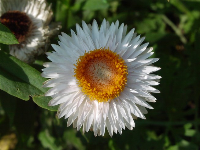 Травянистое однолетнее растение семейства Астровые. Кусты слегка раскидистые, достигают 70 см высоты. Цветки собраны в соцветия — корзинки, имеющие очень яркие и многочисленные листочки обертки белой окраски. Цветет обильно с июля до заморозков. Предпочитает открытые солнечные места. Размножают семенами, которые высевают в конце марта — начале апреля на рассаду. Всходы появляются через неделю после посева. На постоянное место рассаду высаживают после весенних заморозков, выдерживая расстояние между растениями 30 см. Используется в озеленении (клумбах, рабатках), а также на срезку в качестве лучшего сухоцвета.