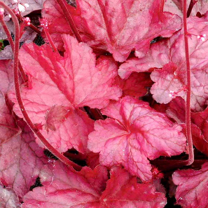 Гейхера FIRE CHIEF - растение высотой 35 см и шириной 40 см. Средние листья цвета красного вина образуют великолепный куст. Розовые и белые цветочки на темно-красных стеблях добавляют изящности растению. Цветет постоянно с весны до осени.