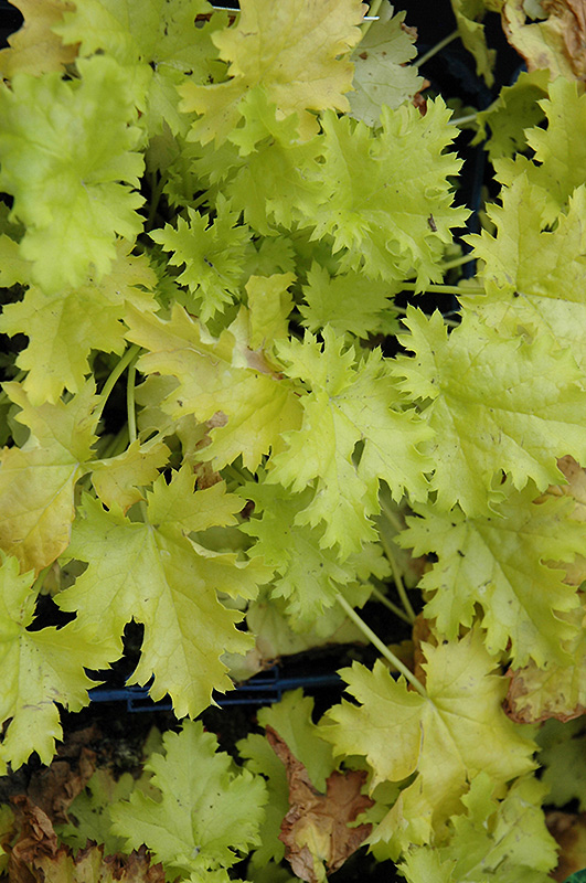 Гейхера PEAR CRISP - это очень красивое, яркое растение высотой 20 см. Листва лимонно-желтая, причудливо-резная, некрупная, с едва заметным салатовым рисунком. Белые цветки украшают растение с мая до июня. Темп роста данного сорта умеренный.