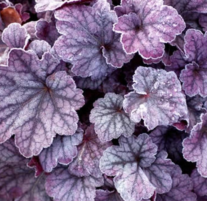 Гейхера ROSE GRANITA - низкорослое декоративно-лиственное растение, с зимующими розеточными листьями. Листья среднего размера, гофрированные, пальчато-рассеченные, фиолетового окраса с серебряными отметинами с внешней стороны и пурпурно-розового снизу. Цветки многочисленные, мелкие (напоминают маленькие колокольчики) кремово-белой окраски, собраны в метельчатые соцветия. Время цветения - июнь-август. Черешки и цветоносы опушенные. Кустик состоит из нескольких розеток. Высота растения более 25-30 см, ширина 30-35 см.