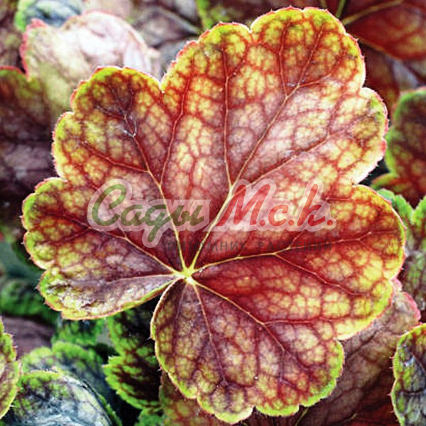 Гейхера VAN GOGH компактная, с великолепной резной листвой красного цвета с зеленой каймой. Вены (прожилки) пурпурно-лиловые. Весной листья зеленые, лаймовых тонов, а к осени полностью краснеют. Цветы розово-красные, появляются в мае-июне. Высота растения - 30-40 см. Сорт предпочитает солнце и полутень.