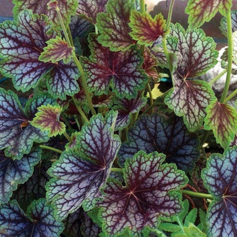 Гейхера Bеаutу соlоur – один из лучших растений для создания цветового пятна на клумбах и в альпинариях. Этот невысокий многолетник образует компактные, невысокие кустики, с бархатистыми, очень декоративной окраски листьями. Поражает уникальное сочетание цветов и оттенков листовой пластины – весной они красно-коричневые или пурпурно-фиолетовые со светло-зеленой каймой по краю. Осенью становятся темно-зелеными, с пурпурными или ярко-коралловыми ободками. В июне-июле над растением образуется воздушное облако из изящных красных цветков-колокольчиков. Сорт является прекрасным, зимостойким многолетником для сада и отличным выбором для начинающего цветовода.