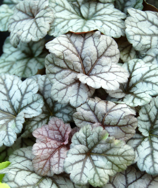 Гейхера Prince of Silver– травянистый многолетник, который особо ценится за эффектные декоративные листья и кружевные цветы. Сорт относится к американским гибридам и характеризуется, как низкорослое компактное растение с раскидистыми стеблями. Его крупные, закругленные, собранные в розетку листья имеют серебристо-зеленоватую окраску с ярко выраженными темно-пурпурными жилками. Снизу они окрашены в пурпурно-красные тона, поэтому кажутся особенно яркими и эффектными. В начале лета над растением появляются цветоносы с незаметными розово-сливовыми цветками. Цветение продолжается порядка двух месяцев. Кустики хорошо себя чувствуют на открытых местах с ажурной тенью и без пересадки не теряют своей декоративности в течение 10 лет. Многолетник предпочитает плодородные, увлажненные слабокислые или нейтральные почвы.