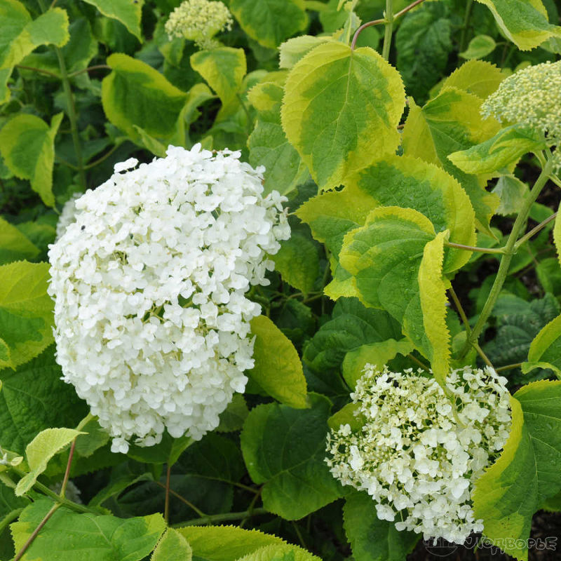 Пестролистная форма от сорта «Annabelle». Куст высотой 120-150 см и шириной 90-150 см. Листья зелёные с нерегулярной кремово-жёлтой каймой. Соцветия крупные, симметричные, диаметром до 25 см. Цветки кремово-белые. Цветёт на побегах текущего года очень обильно, в июле-августе. Требует плодородной, влажной, хорошо дренированной почвы. Место полутенистое или солнечное. Очень эффектна в одиночных и групповых посадках. Зона 3 (до -34°С).
