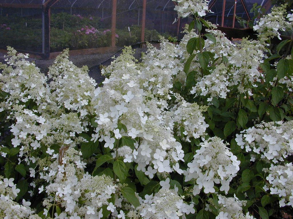 Гортензия метельчатая Brussels Lace – куст раскидистый с многочисленными побегами, вырастает до 1,8 метров в высоту. Крона куста округлая до 2 метров в диаметре, листва темно-зеленая, яйцевидной формы. Сами побеги темно-красного цвета.Цветет метельчатыми соцветиями конической формы 35 см в длину. Цветки создают эффект кружева, гамма – белая, к осени розовая. Период цветения – с июля и до заморозков, обильное. Высаживается в удобренные гумусом почвы, но адаптируется и в менее плодородных почвах. Главная особенность этого сорта – неприхотливость. Чаще используется в ландшафтных композициях.