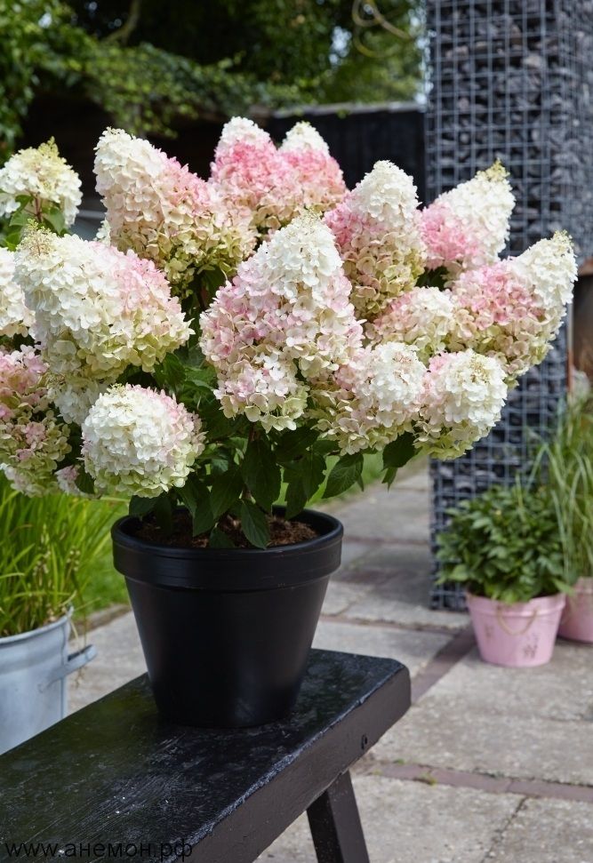 Очень компактная гортензия с очень тёмными зелёными листьями. Цветки белые, со временем постепенно розовеют. Цветение в июле-сентябре. Куст высотой 80 см и диаметром 70 см. Место солнечное или полутенистое. Почва влажная, дренированная. Зона 4 (до -29ºС).