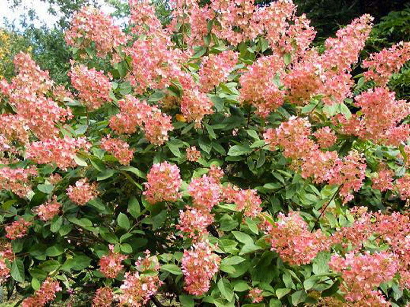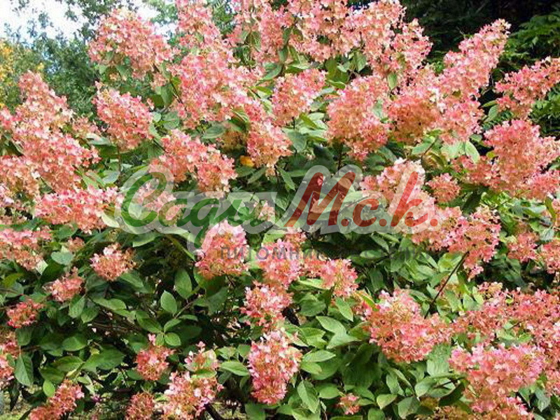 Высота до 2м. Растение с прямыми редковетвистыми побегами. Особенно эффектна в штамбовой форме. Листья супротивные, эллиптические или яйцевидные шершавые, матово-зеленые. Цветки собраны в крупные соцветия, длиной до 30см, которые прерываются в нескольких местах листьями, отчего метелка выглядит более крупной и воздушной. В начале цветения цветки кремово-белые, затем становятся темно-розовыми
