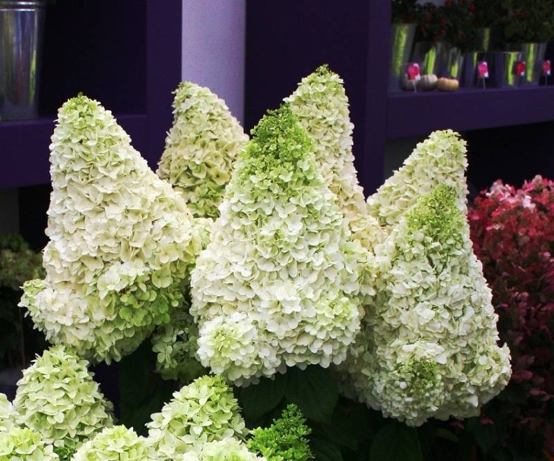 Новый морозостойкий сорт гортензии метельчатой. Гибрид между сортами Limelight и Grandiflora. Раскидистый крупный кустарник до 2м высотой, и диаметром до 1,5м. Цветет очень крупными плотными коническими соцветиями около 40см длиной, состоящими из белых, в начале цветения - зеленоватых, цветков, которые к осени приобретают легкий оттенок розового. Цветет обильно с июля по октябрь на побегах текущего года. Листья крупные, к осени желтеют.