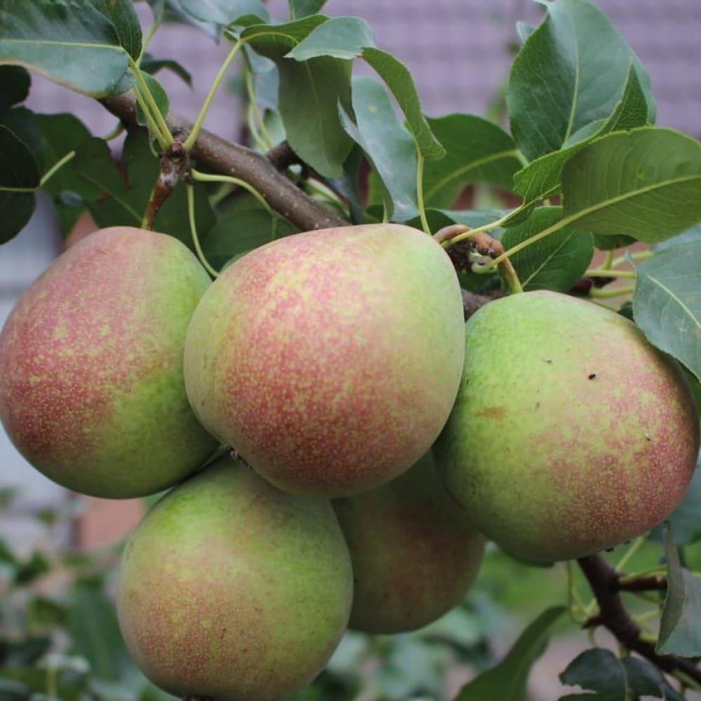 Саженцы груши домашней Мраморная ценятся за качество плодов. Груши сорта Мраморная одни из наиболее вкусных среди сортов средней полосы. Плоды имеют зеленовато-желтый цвет с мраморным румянцем красноватого оттенка, крупные, одинаковые по размерам. Под толстой кожицей находится сочная сладкая мякоть, с сильным приятным запахом. Плоды поспевают в ранне-осенние сроки (август-сентябрь). Хранятся не более месяца. В жару нуждается в поливе, иначе плоды осыпаются. Устойчив к болезням.