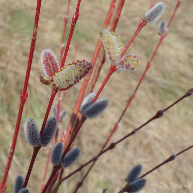Кустарник высотой и диаметром 4-5 м, к 10-ти годам высота и диаметр 2 м. Рост можно сдерживать обрезкой. Побеги стройные бордовые глянцевые, великолепно выглядят круглый год. Листва узкая голубовато-зелёная, контрастирует с побегами. Серёжки маленькие серо-зелёные, появляются рано весной. Место солнечное или полутенистое. Почва влажная. Зона 3 (до -34ºС). Сорт имеет награду за садовые заслуги от Королевского садового общества Великобритании