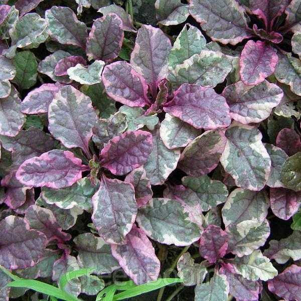 Живучка ползучая Бургунди Глоу / Burgundy Glow — почвопокровный многолетник с декоративными листьями и соцветиями. Считается самым красивым среди всех сортов живучки ползучей. Высота куста до 20 см, ширина около 30. Цвет листьев представляет собой сложную комбинацию из зеленого, розового, пурпурного и белого цветов. Розовый и пурпурный цвета присущи молодой листве, зеленый проявляется на зрелой. Белый цвет выступает в качестве окантовки листьев. Зацветает живучка в мае, образуя сиренево-синие колосовидные соцветия. Растение морозостойкое, к почвам нетребовательное, любит солнце, но хорошо переносит и полутень. Предпочитает умеренное увлажнение. Распространяется преимущественно делением корневища. Используется для создания ярких травяных ковриков, оформления каменистых горок.