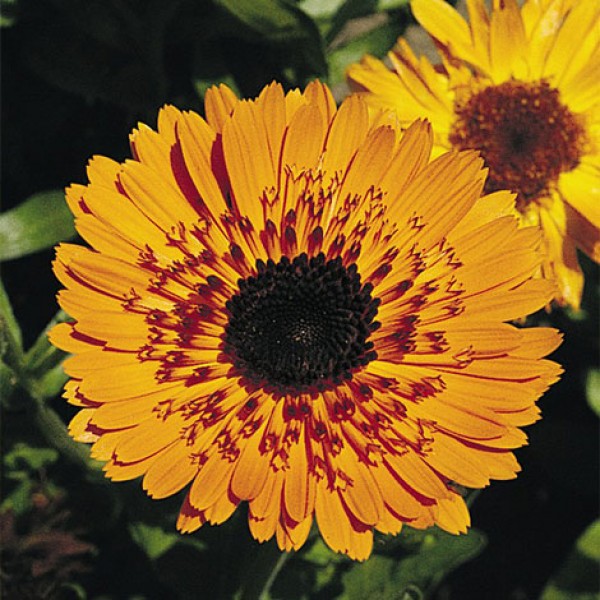 Однолетнее декоративное растение высотой до 70см с яркими соцветиями. Идеально подходит для выращивания в групповых посадках, рабатках, бордюрах, также для срезки, лекарственных садиков. Отличается обильным и продолжительным цветением, с начала лета до середины осени. Соцветия крупные, до 8см в диаметре, густомахровые, золотистого цвета с золотым центром. Листья темно-зеленые, удлиненные, ланцетные. Растение неприхотливое. Легко переносит осенние заморозки.