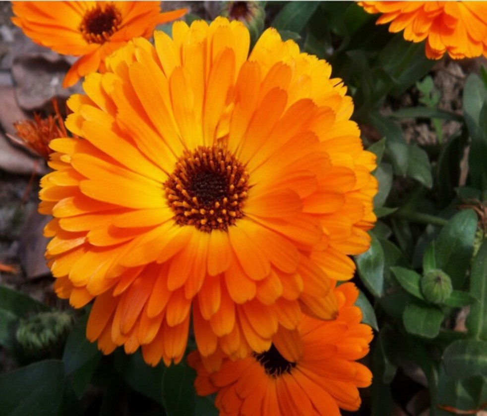 Календула Indian Prince.Время цветения июнь-сентябрь. Этот сорт календулы не похож на всем известные цветы. Лепестки у этих цветков оранжево-желтые, с игольчатыми кончиками, изнанка лепестка красноватая.