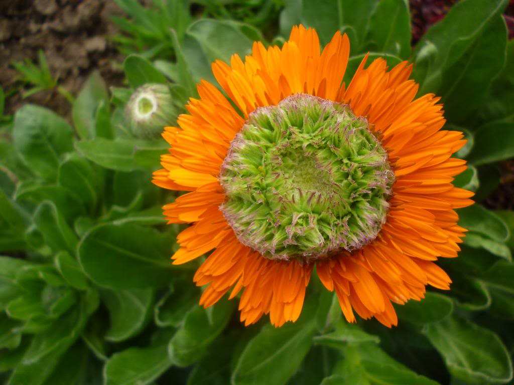 Календула Green heart- оригинальная окраска соцветий. Обильно и продолжительно цветущее растение, высотой 50-60 см. Кустик раскидистый, густо облиственный, с ветвистым стеблем. Соцветия – махровые, крупные (7-8 см в диаметре), оранжевые, с необычной, изящной зелёной сердцевиной. Прекрасно смотрится в группах, рабатках, бордюрах и срезке. Высушенные цветки календулы применяются в медицинских целях.