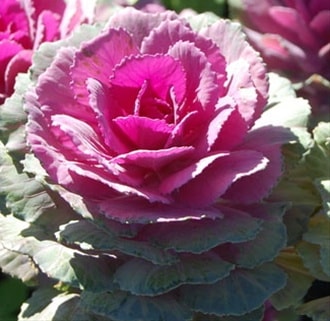Срезочная декоративная капуста для оригинальных осенних и зимних композиций. Розетка гладких овальных листьев, красиво уложена по спирали в виде раскрытого цветка розы на длинном черешке (60-90 см). Гибрид декоративен с середины лета до сильных морозов. Оригинально смотрится зимой в заснеженном саду. Культура светолюбива, предпочитает богатые гумусом почвы; холодостойка, выдерживает во взрослом состоянии заморозки до -8-12°С, в возрасте рассады – до -4°С. Семена на рассаду высевают в конце марта в хорошо увлажненную землю. При температуре почвы 18-20°С всходы появляются через 3-5 дней. Молодые всходы лишь немного опрыскивают и начинают поливать, когда они окрепнут. Выращивают рассаду при температуре 12-16°С. В начале мая ее высаживают в грунт через 50 см. Гибрид идеален для групповых посадок в сочетании с более низкими, сильно облиственными декоративными культурами, которые скроют длинный черешок, оставляя на виду эффектную розетку.