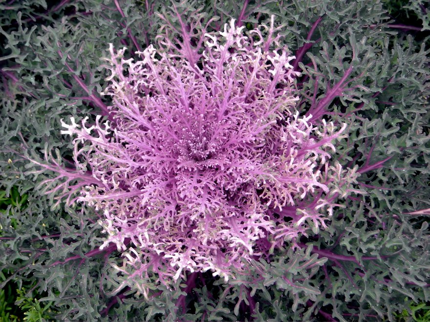 Капуста декоративная Пикок Ред - необычайно декоративный сорт с сильно рассеченной бордово-зеленой листвой. Это компактное растение с низкорасположенной розеткой пильчатых листьев. Высота стебля - 20–30 см. Сорт неприхотлив, холодостоек, легко переносит пониженные температуры, повышенную влажность, сохраняет привлекательность до снега.