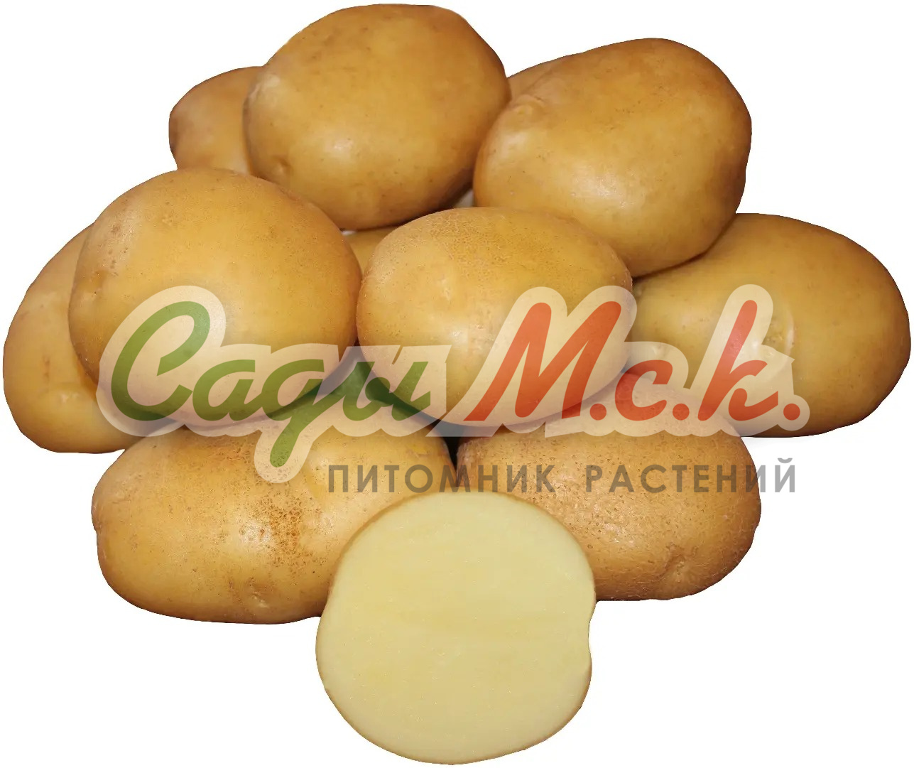 Количество клубней в гнезде —8-12 штук. Клубни однородные, крупные, сходные по размеру и массе. Урожайность — 160 — 395 ц/га. Масса товарного клубня — 100-150 грамм. Товарность — 83-98%. Лежкость — 97%. Клубни овальной формы, крупного размера, с желтой мякотью. Кожица желтая, слабосетчатая. Глазки среднего размера, среднеуглубленные.
