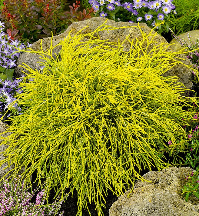 Годовой прирост Годовой прирост составляет около 15-20см. Хвоя верёвко-образная, чешуйчатая, яркого золотистого цвета, мягкая на ощупь.