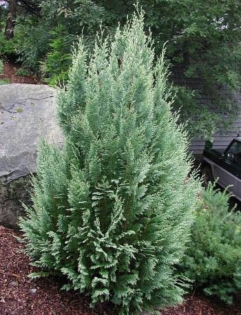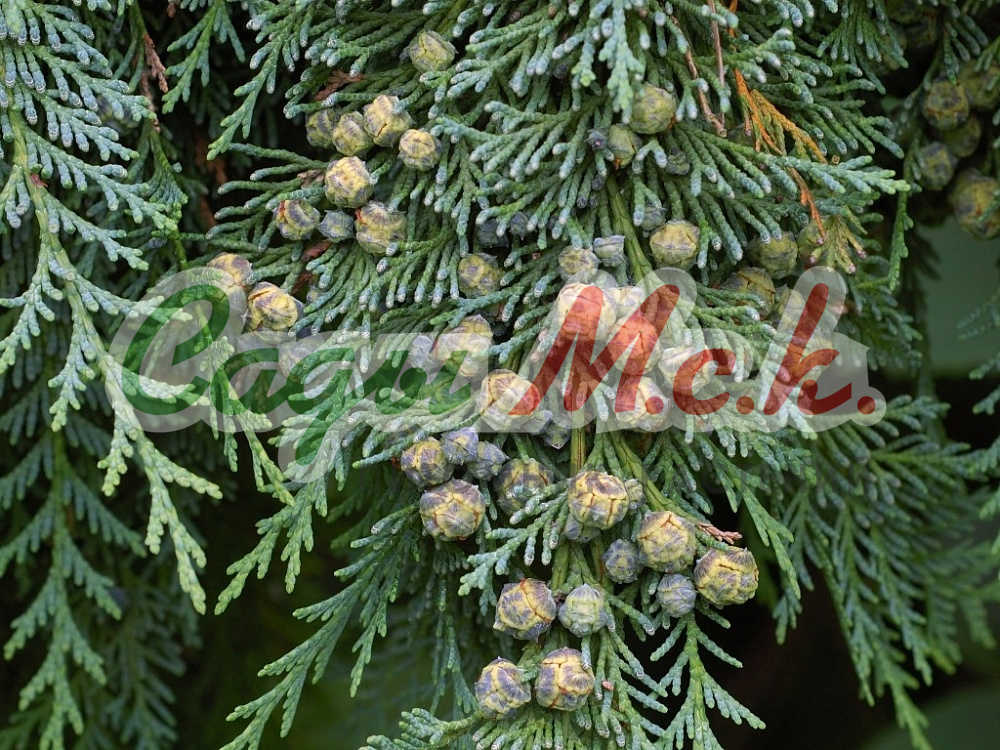 Хвоя чешуйчатая, зеленая, густая, плотно прилегает к ветвям. Молодая поросль мраморно-белая или белая, к зиме зеленеет