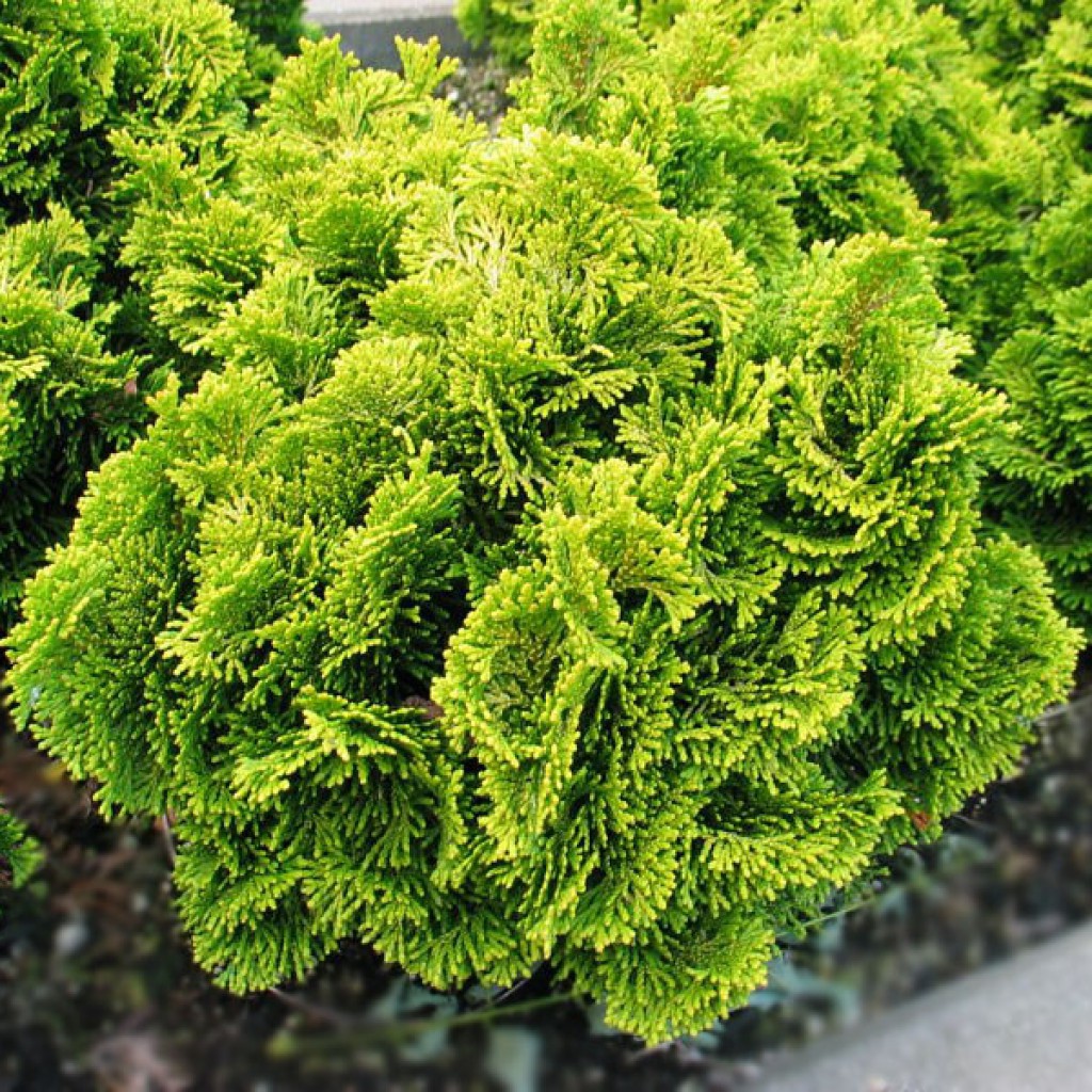Кипарисовик тупой Аврора - специфический и очень интересный сорт, который заслуживает самых видных и теплых местечек в саду. Растение действительно обожает солнце и всеобщее внимание. Эти два фактора придают ему еще больше сил и энергии для наращивания спирально закрученной кроны. Выдержанная в форме широкого конуса, она медленно устремляется вверх, намного более интенсивно разрастаясь в ширину. Взрослый кипарисовик тупой Aurora – уникальное растение, яркая изумрудно-зеленая хвоя которого буквально искрится под солнечными лучами. Хвоинки кипарисовика очень мягкие и послушные. Повинуясь сортовым обязанностям, они растут в строго определенном порядке и направлении, формируя своеобразные веера. Последние складываются в удивительной красоты спиральные композиции, их которых и состоит вся крона растения
