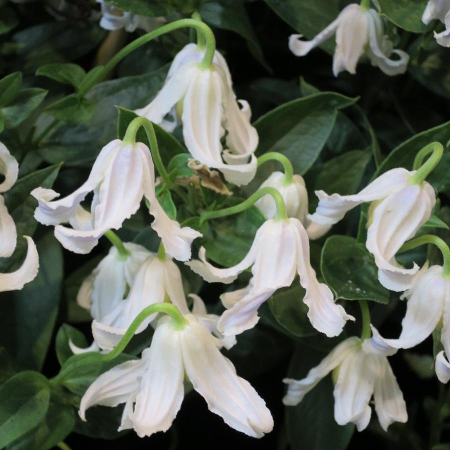 Клематис Hakuree - многолетник с гибкими кладущимися побегами. Побеги не цепляются к опорам, но могут о них опираться. Цветки слегка ароматные, колокольчиковидные, белые со светло-фиолетовой серединкой, цветут с июня по сентябрь. Диаметр цветков - 3-5 см. С июля до поздней осени растение украшено декоративными пушистыми соплодиями. Высота растения - 50 см. Сорт морозостойкий.