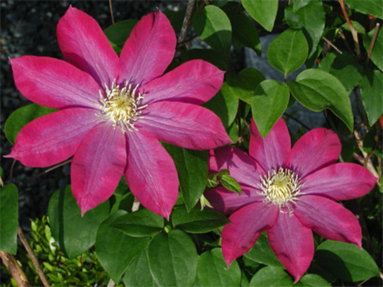 Клематис Kakio - сорт с искристыми крупными цветками и контрастными жёлтыми тычинками в середине. Цветок насыщенно-розовый, с более светлой полосой по центру лепестка, диаметр цветка 10 - 15 см. В цветке находится по 8 лепестков. Цветение продолжительное, повторное, на побегах прошлого года с июня по август, на побегах текущего года с августа до заморозков. Высота растения 200 - 250 см. Сорт обладает высокой устойчивостью к заболеваниям.