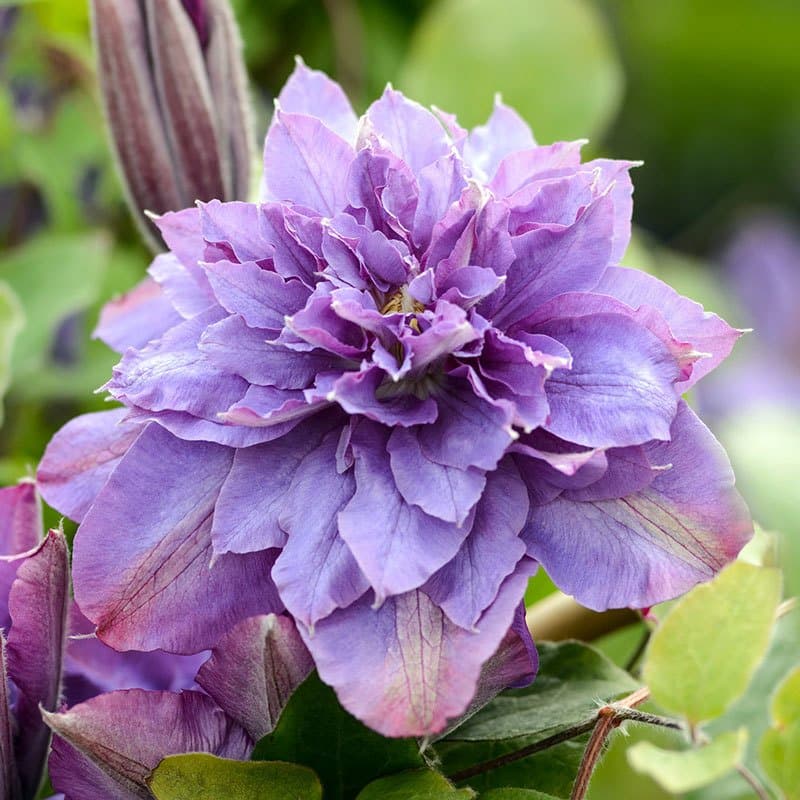 Клематис крупноцветковый Вивьян Пеннел - с повторным цветением за период, первое цветение с мая по июнь (цветет махровыми цветками на прошлогодних побегах), второе цветение с августа по сентябрь (цветет полумахровыми цветками на побегах текущего года). Цветение обильное и продолжительное. Клематис крупноцветковый Вивьян Пеннел - вьющееся растение, высота клематиса от 2, до 3 метров, необходима садовая опора. Цветки крупные до 17 см. в диаметре, фиолетового-голубого цвета. Высадку производят на солнечной стороне, хорошо защищенной от ветра. Группа обрезки: II (слабая). Может плестись по натуральным опорам: деревьям, кустарникам. Очень красиво смотрится у беседок, решеток, невысоких заборов, стен, арок и т.д.