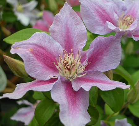 Саженцы клематиса Sеаlаnd Gеm характеризуются обильным цветением и в летний период ваш сад наполняется обилием красивых перламутрово-розовых цветков. Заостренные эллиптические чашелистики с волнистыми краями выглядят аристократично и роскошно, а их великолепие дополняется изящными светлыми пыльниками и перламутровой полосой по центру лепестка.Крупномер Sеаlаnd Gеm вырастает до 2,5-3 м. Сорт характеризуется обильным цветением на побегах текущего года, а при сохранении прошлогодних побегов будет цвести и на них. Саженцы этой декоративной лианы можно размещать в любых зонах сада.