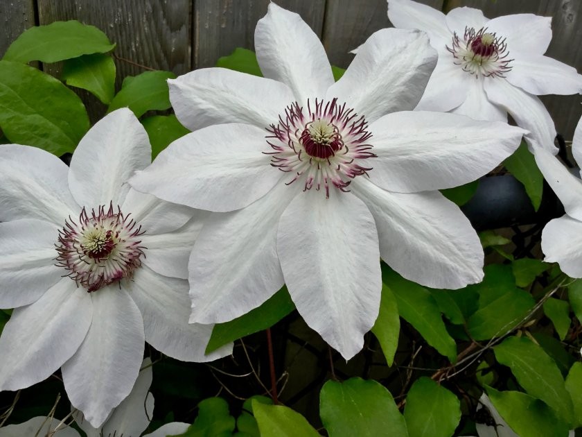 Клематис Henryi - мощная лиана, побеги достигают 2,5-3,5 м в длину. Цветки крупные и очень крупные (15 - 20 см), звездообразные, остроконечные, из 6-8 белоснежных чашелистиков, с длинными бело-шоколадными тычинками. Растение обильно и эффектно цветет в мае - июне на перезимовавших побегах; повторно цветет в августе-сентябре. Устойчивый к болезням сорт с хорошей зимостойкостью. Предпочитает солнечные места.