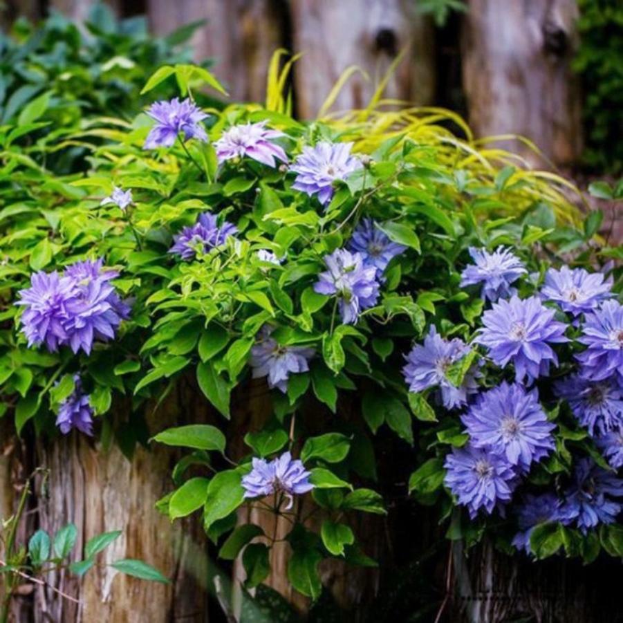 Клематис Teshio - очень оригинальный японский сорт. Распускающиеся цветки с трубчато-закрученными лепестками выглядят как маленькие ёжики. Раскрытые цветки махровые, слегка сплюснутые. Окрас цветков лавандово-голубой, светлее у основания. Диаметр цветков 14 см. Сорт цветет с конца мая до июля. Лучше растёт на солнечных местах. Прекрасно подходит для выращивания в небольших садах и контейнерах. Высота растения 1,5-2,5 м. Сорт морозостойкий.