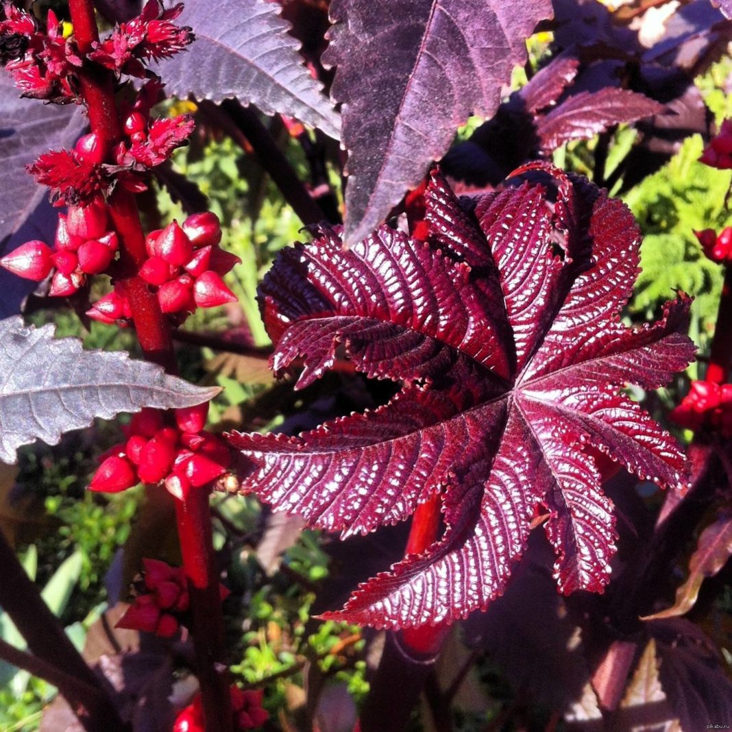 Клещевина Гибсона - декоративно-лиственный многолетник, достигающий двухметровой высоты.Лидер одиночных посадок. Стебель прямой, ветвистый. Листья крупные, темно-красного цвета. Сорт предпочитает солнечные места. Используют его для декорирования стенок, посадки группами и одиночно на газоне.