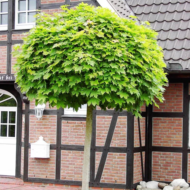Саженцы клена остролистного Globosum украсят даже небольшой сад и будут радовать глаз владельца в любой сезон. Маленький размер взрослого дерева до 6 м в высоту. Форма кроны – шар, диаметром от 3 до 5 м.