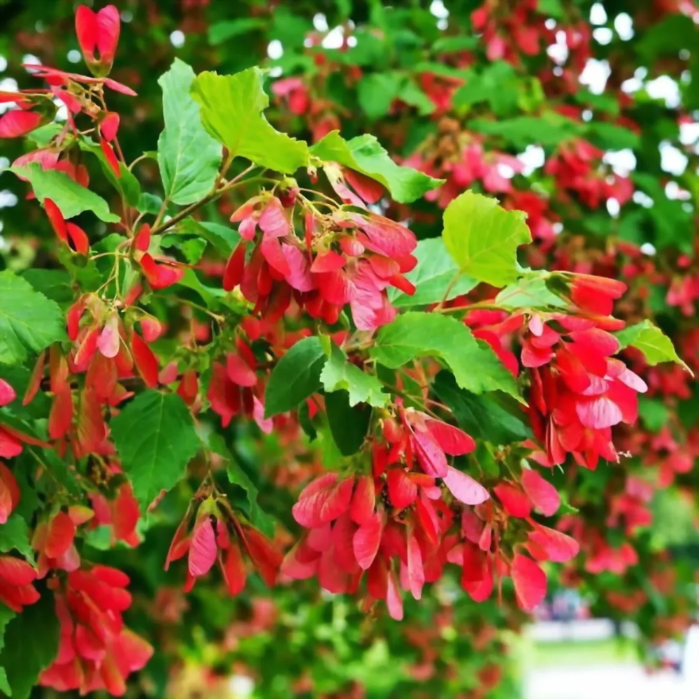 Клен татарский - крупный кустарник или небольшое дерево, рост которого колеблется от 2 до 12 м . Любит влажные и тенистые места. Распускается на 2 недели раньше большинства клёнов, но цветёт позднее других клёнов. Перед цветением он набирает много сил и выдаёт сборное соцветие из 4-х щитков (у других клёнов соцветие состоит из одного щитка), из-за большого количества цветов часть крылаток остается недоразвитой. Высота 8 м., диаметр кроны обычно 6 м. Цветки плоские округлые, желто-зеленые, 0.5 см. Листья вытянутые с характерным рисунком, весной и летом зеленые, осенью красные, от 4 до 8 см.