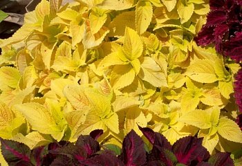 Колеус Wizard Golden - растение многолетнее. Обладает пёстрым ярко - желтым окрасом листьев. Сами листья широкие и махровые. Их форма округлая с вытянутым кончиком. Край листа немного зубчатый.