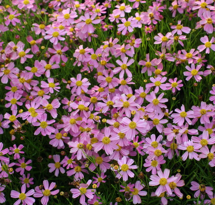 Кореопсис розовый Американ Дрим (American Dream), который относится к семейству Астровые, образует небольшой кустарник и отлично смотрится с другими представителями этой группы растений. В июне на травянистом кусте появляются соцветия-корзиночки, в которых желтенькие трубчатые цветочки расположены по центру, а окружают их более крупные розовые цветки язычковой формы. Семена можно проращивать на подоконниках или в теплицах. Кореопсис розовый Американ Дрим подходит для посадки в крупные контейнеры или балконные клумбы, хорошо смотрится в срезке, поэтому используется в летних букетах.