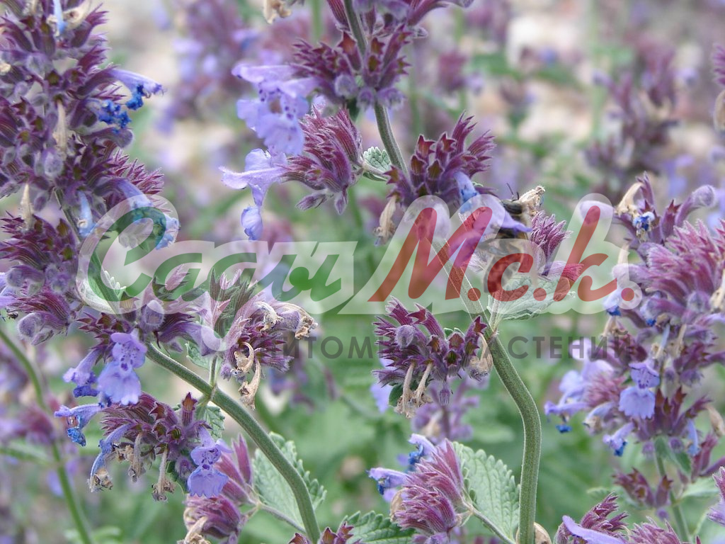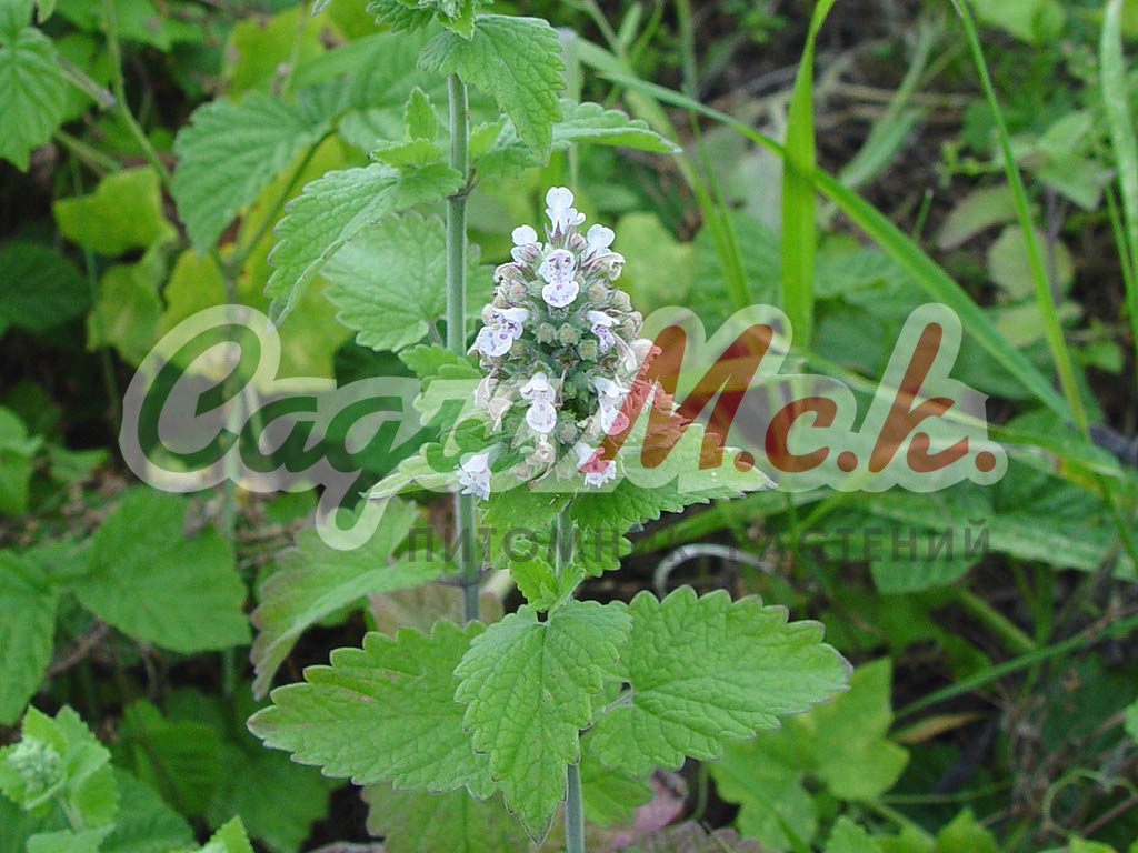 Котовник Alba. Окрас цветков белый с мелким темно-розовым крапом. Листва зелёная, продолговатая с зубчатыми краями. Цветение приходится на все лето и первый месяц осени.