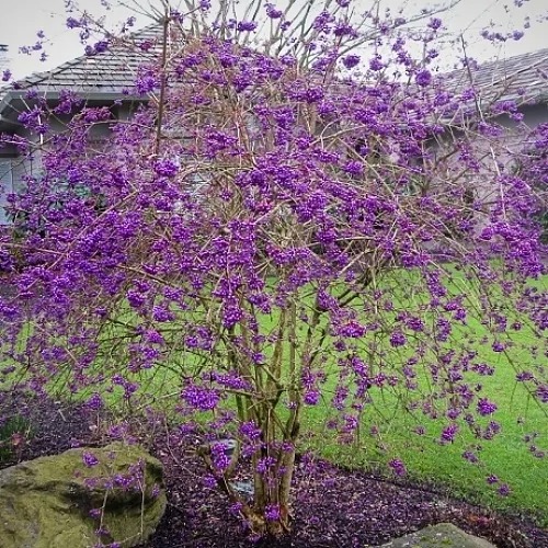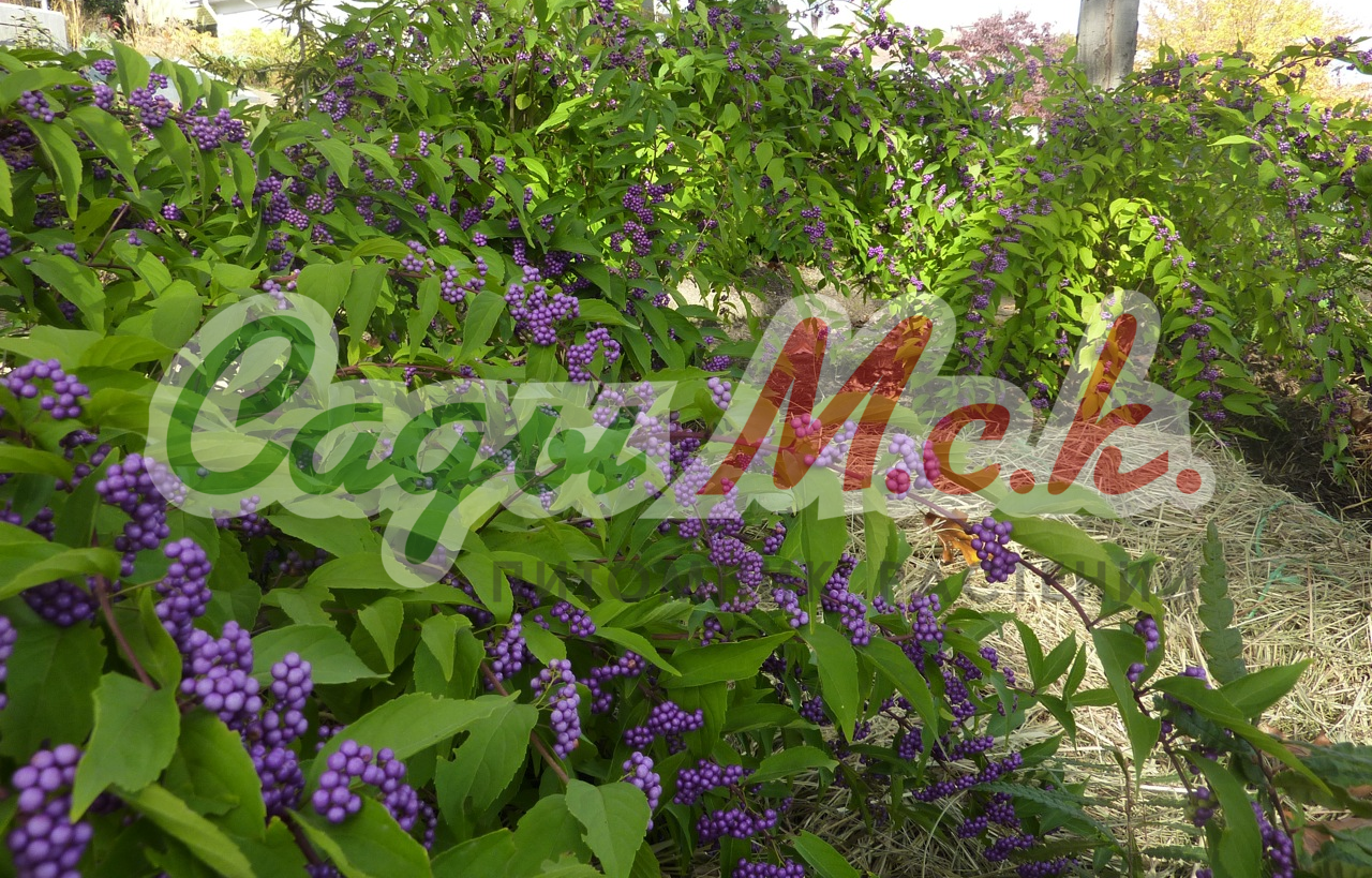 Красивоплодник Profusion - кустарник высотой 1,8 х 1,8 м. Особенно декоративен осенью. Цветет в августе бледно-розовыми цветками, на месте которых в конце сентября образуется множество лиловато-синих плодов. Срезанные ветви можно использовать в аранжировках. Предпочитает солнечное место или легкую полутень.
