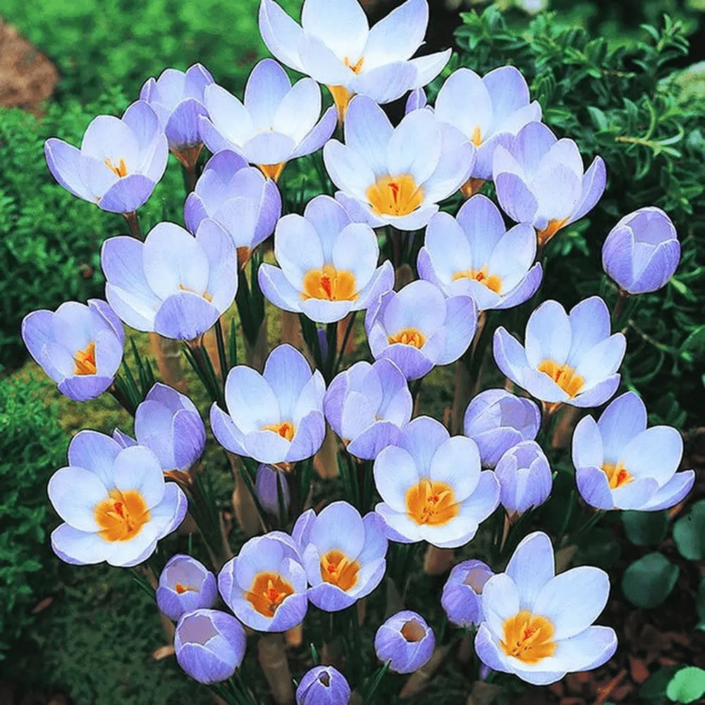 Крокус Блу Перл ― представитель очень красивого и пока редкого на отечественных участках сорта. Небольшие цветы в диаметре достигают всего лишь двух сантиметров, но это полностью компенсируется их необычной окраской. А если посадить рядом сразу много луковиц, то на участке они будут выглядеть как разбросанные по земле жемчужины. Крокус Блу Перл имеет нежно-голубые лепестки с легким налетом светло-вишневого у основания. Центр украшает ярко-желтое пятно. Высота растения составляет около 15 сантиметров. Крокусы часто высаживаются группами на альпийских горках, под деревьями или на смешанных клумбах с низкорослыми цветами.