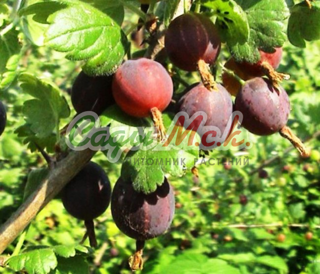 Крыжовник Варшавский - куст сильно раскидистый, хорошо ветвистый. Побеги толстые, сильные, коричнево-серые. Шипы сильные, одиночные, реже двойные и тройные, расположены по всему побегу. Листья средней величины, желтовато-зеленые, блестящие. Цветки среднего размера. Цветочная кисть одноцветковая или двухцветковая. Лепестки желтоватые. Чашелистики бледно-зеленые с розовыми краями. Ягоды очень крупные, продолговатые,темно-бордовые с розовыми прожилками, с плотной кожицей. Мякоть розоватая, сладкого приятного вкуса. Ягоды прочно держатся на кусте, не теряя вкусовых качеств и не осыпаясь. Плодоношение раннее. Урожайность высокая, сорт морозостоек.