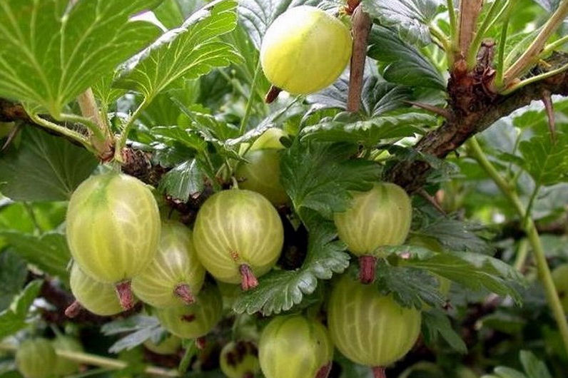 Саженцы крыжовника Белые ночи относят к среднерослым сортам. Куст крыжовника отличается множеством шипов, но это компенсируется отличной урожайностью. Шипы одиночные, длинные, крепкие, находятся под прямым углом к побегу. Ягоды мелкие или средние, практически неопушенные, имеют овальную или округлую форму, желто-зеленоватый окрас. Крупномер Белые ночи характеризуется ягодами со средней кожицей и сладкой мякотью. Преимуществами данного сорта являются раннее созревание ягод, самоплодность, стабильное плодоношение, прекрасная устойчивость к мучнистой росе.