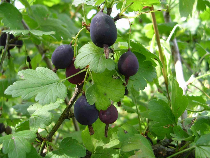 Саженцы крыжовника Черный негус пользуется особым спросом среди садоводов. Цвет ягод действительно черный, что придает им особую привлекательность в период плодоношения. Крупномер Черный негус имеет листья ярко-зеленые, крупные, тусклые, нежные. По срокам созревания этот сорт является среднеспелым, но запаздывание с уборкой никак не снижает качества ягод. Шипы очень сильные, загнутые вниз, длинные, острые. Ягода, грушевидной формы, с удлиненной плодоножкой, почти черная, густо покрытая восковым налетом. Кожица тонкая. Ягоды имеют сладкий вкус, с сильным ароматом.