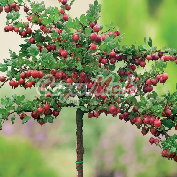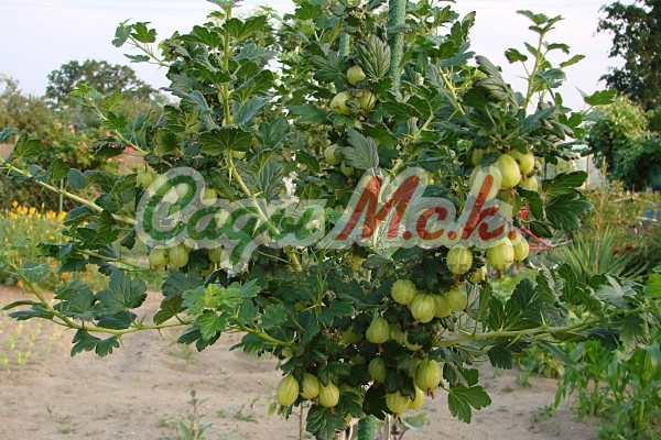 Удобный для ухода и красивый по форме куст крыжовника на штамбе. При таком способе формирования куста намного облегчается сбор урожая крыжовника.