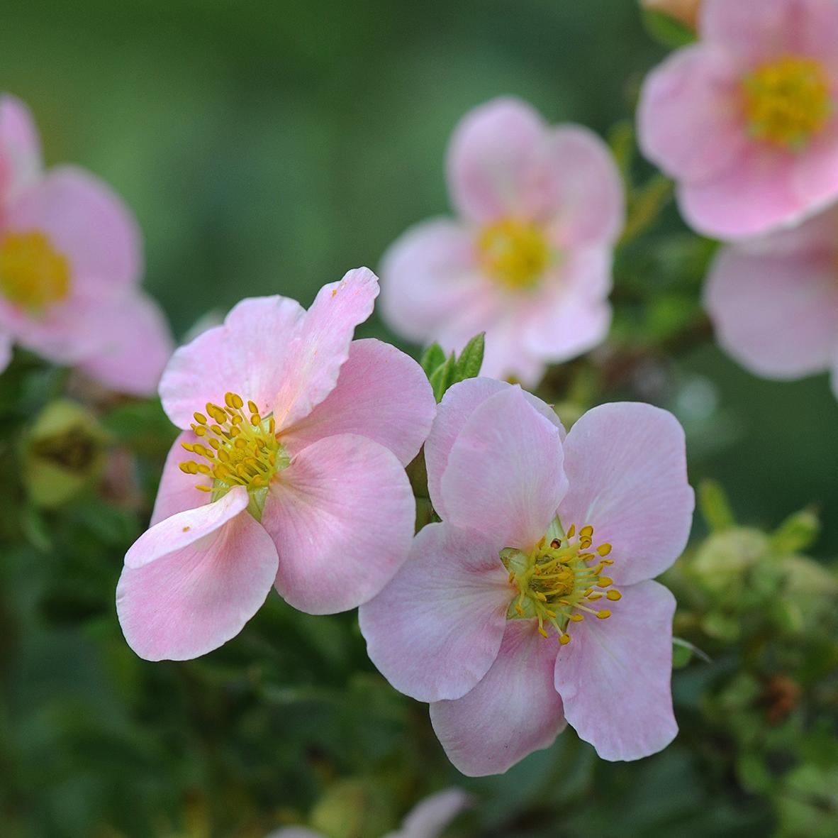 Цветки розовые, на солнце на пару тонов выгорают. В диаметре до 3,5 см. Цветение продолжительное, с июня и до заморозков. Кустарник хорошо развивается на солнечных участках и в полутени. Лапчатка кустарниковая Принцесс предпочитает умеренно увлажненные, легкие почвы. Для повышения декоративности рекомендуется весной проводить обрезку. Сорт морозоустойчив.