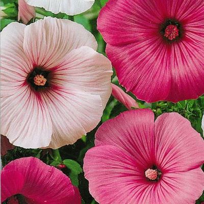 Обильноцветущее однолетнее растение с крупными ( Ø 5-7 см) воронковидными цветами. Цветение длительное, с июня и до заморозков. Растения до 110 см в высоту с сильноветвящимся стеблем. Лаватера холодостойкая, засухоустойчивая, предпочитает солнечное местоположение, устойчива к воздействию дождя и ветра. Эффектно смотрится в групповых посадках, миксбордерах и на клумбах. В смесь входят окраски: белая – 25%, бордовая – 25%, розовая – 25%, фиолетовая – 25%.