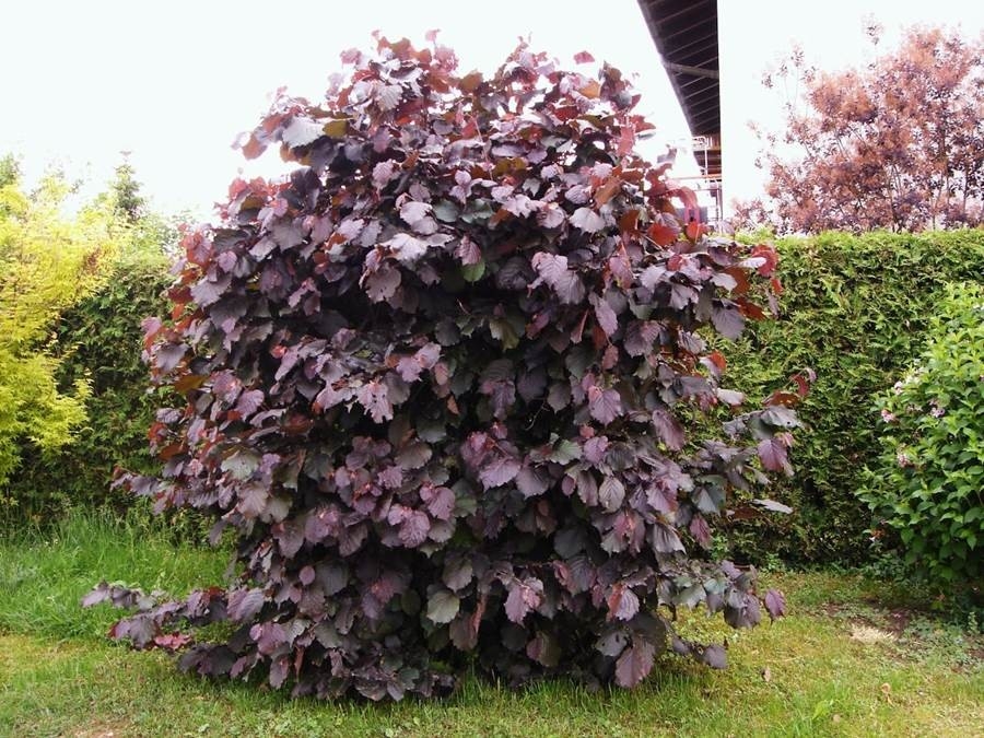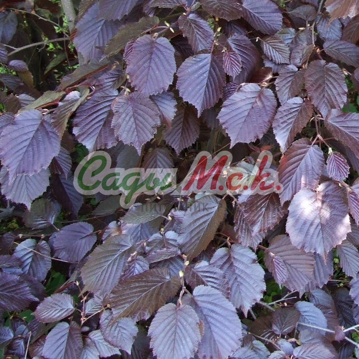 Листья круглые, темно-красные весь вегетационный период, покрыты мелкими ворсинками.