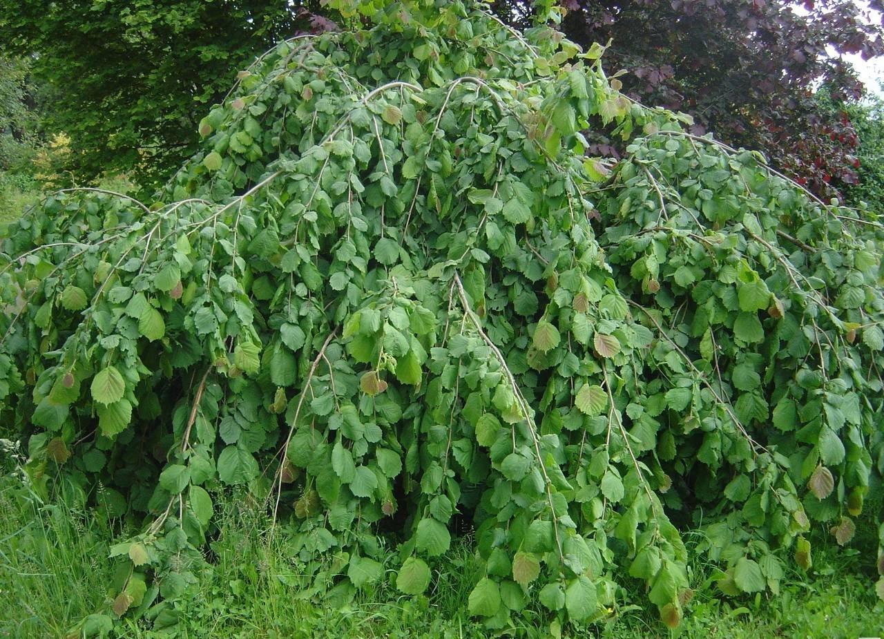 Сорт лещины обыкновенной Пендула выращивается в штамбовидной форме, как небольшое дерево с зонтичной кроной. Высоты и диаметр кроны в этом случае 2-3 м. Ветви такого растения поникающие, листья широкоокруглые, заостренные, зеленые, желтеющие осенней порой.