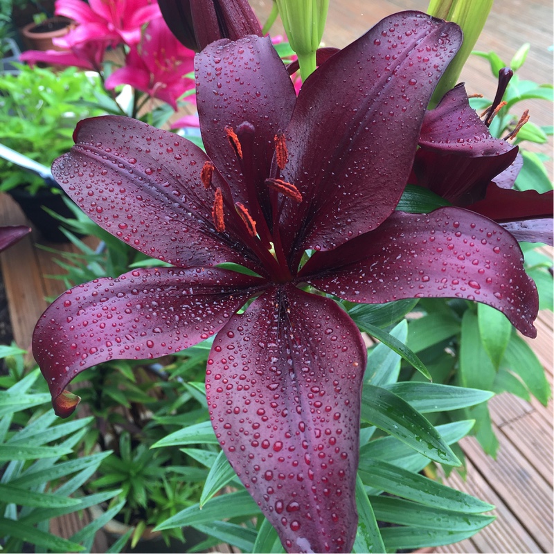 Луковицы азиатской лилии Блэк Чарм (Lilium asiatic Black Charm) сразу притягивают внимание своей колоритностью, яркостью. Высота стебля около 0,8-1 м. Соцветия зонтиковидные, крупные. Окраска темно-бордовая, максимально приближенная к черной. Лепестки бархатные. Тычинки оранжевые, контрастные. Листва зеленая с шоколадными или пурпурными штрихами. Лилия азиатская Блэк Чарм неприхотлива в уходе, морозостойка, устойчива к вредителям, болезням. Используется в одиночных и групповых посадках, заметно выделяется среди других цветущих растений. Высаживать желательно на солнце или в полутени.