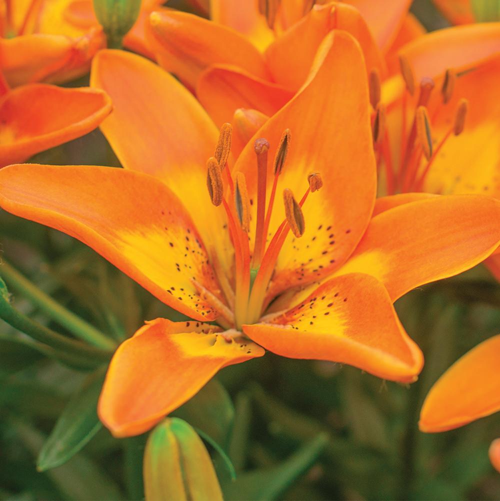 Лилия азиатская горшечная Брайт Джой (Lilium) при неприхотливости в уходе достигает высоты всего лишь 30 см. Зато такой небольшой рост будет компенсирован крупными яркими цветами с персиково-оранжевой окраской. Цветок украшает желтая звезда в центре и темный крап. Брайт Джой относится к азиатским гибридам лилий ― самому многочисленному разделу, куда входит более 2000 сортов. Лилию азиатскую горшечную Брайт Джой отличает морозостойкость и легкость в размножении. Эти сортовые лилии пригодны для высадки в открытом грунте, но прекрасно себя будут чувствовать и в пределах квартиры или на балконе.